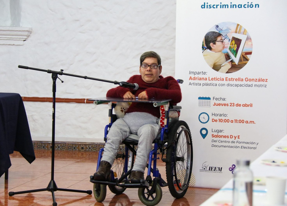 El Instituto Electoral del Estado de México (IEEM), a través de la Unidad Coordinadora de Género (UCG), llevó a cabo el taller Pintar con la boca, espacios libres de discriminación, dirigido a personas servidoras públicas electorales, con el propósito de fomentar la empatía, la inclusión y el respeto a la diversidad.